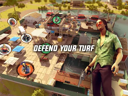 • Join the action and claim your turf! Then defend it from rival crime gangs; the free resources you'll gain will come in handy for future wars and when crafting new guns and items in the game.