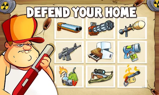 More than 30 awesome DEFENSE TOOLS like the mighty shotgun, the reckless minigun, and the super atom bomb.